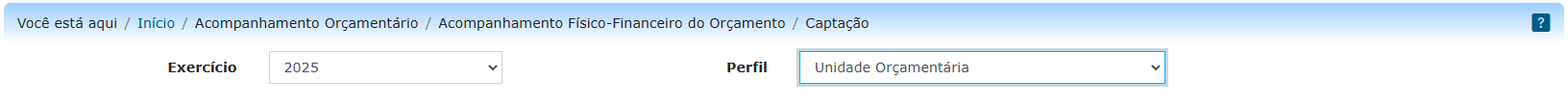 Acompanhamento Orçamentário>> Acompanhamento Físico-Financeiro>> Captação