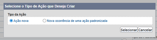 Aparecerá um pop-up questionando se é uma ação nova ou uma nova ocorrência de uma ação padronizada: