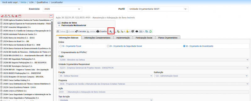 LOA → Qualitativo → Entrar no cadastro de qualquer ação da Unidade Orçamentária